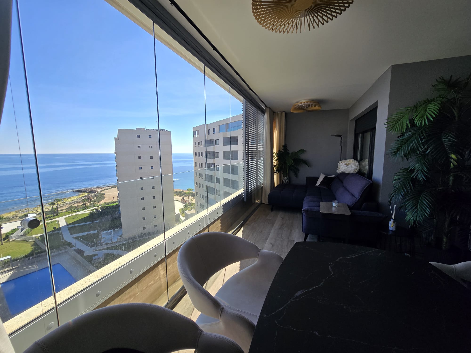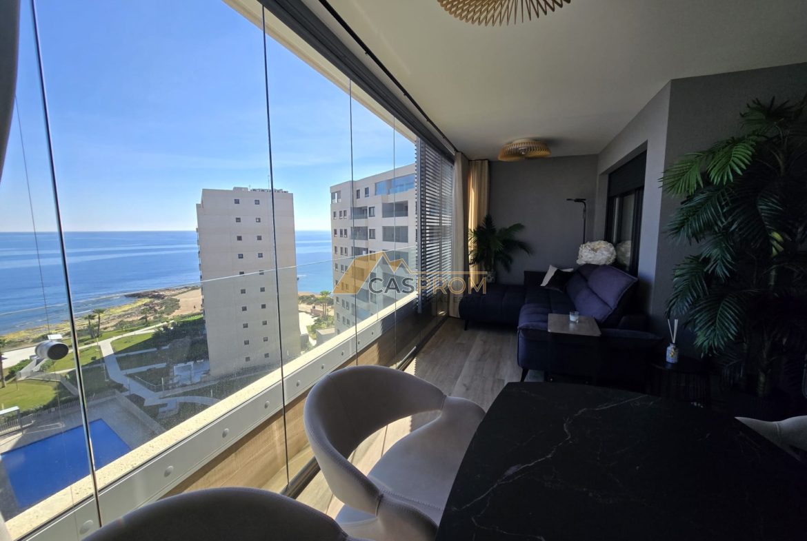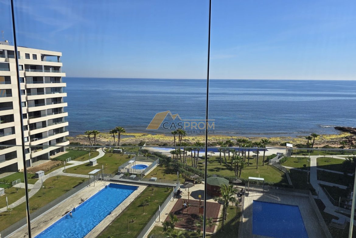 Wyjątkowy apartament w prestiżowej inwestycji w Punta Prima, oferujący niezakłócony, frontalny widok na Morze Śródziemne. Położenie na 7 piętrze zapewnia spektakularne panoramy oraz doskonałe doświetlenie wnętrz.