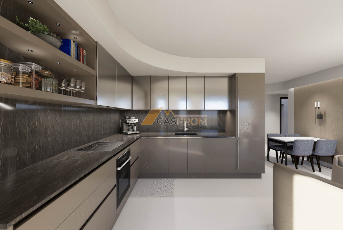 Apartament zaprojektowany jest z myślą o komforcie i energooszczędności – posiada izolację termiczno–akustyczną, podwójne szyby, drzwi antywłamaniowe, szafy w zabudowie, nowoczesną kuchnię z blatem Silestone / Compact, meble łazienkowe z lustrem, a także preinstalację klimatyzacji kanałowej i pompę ciepła aerotermalną.