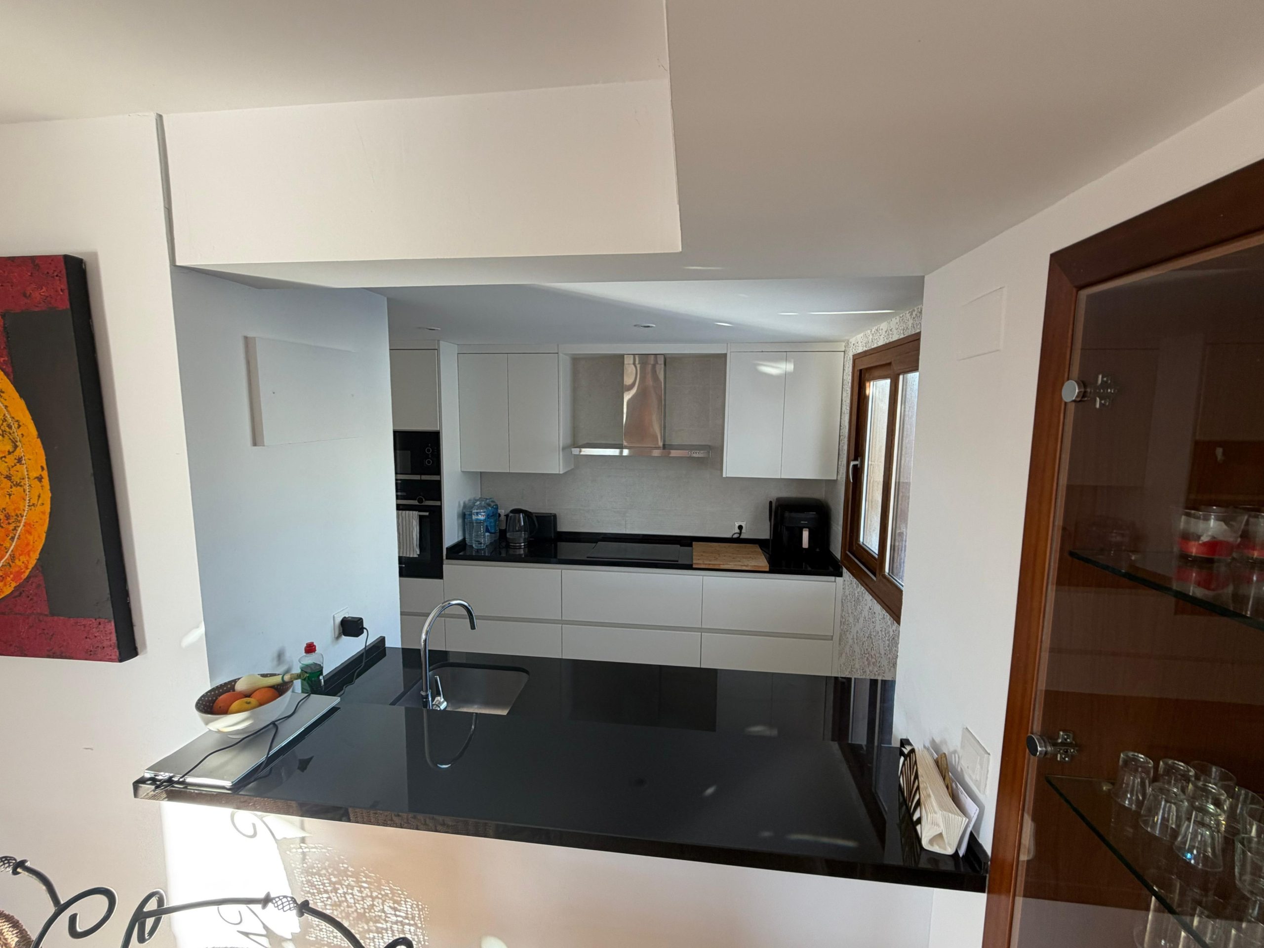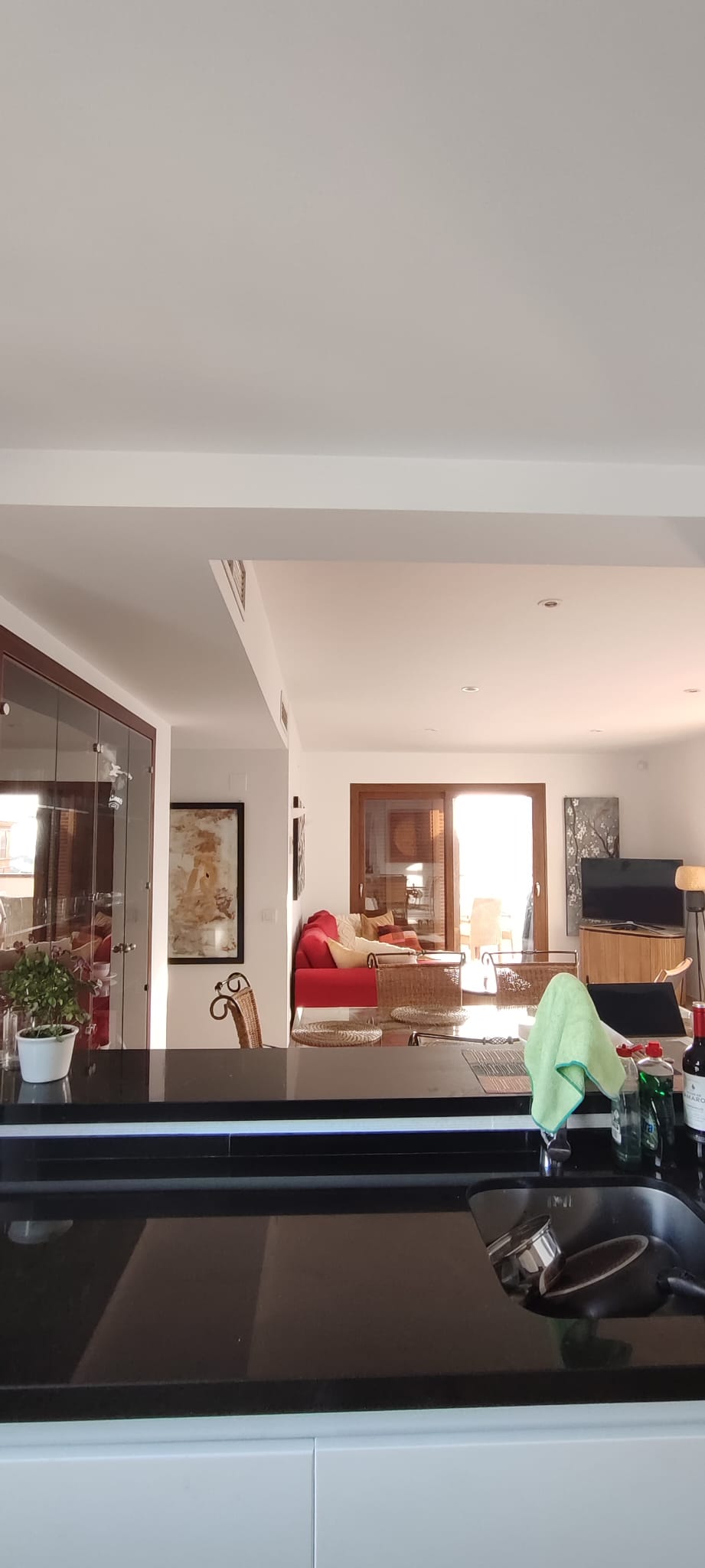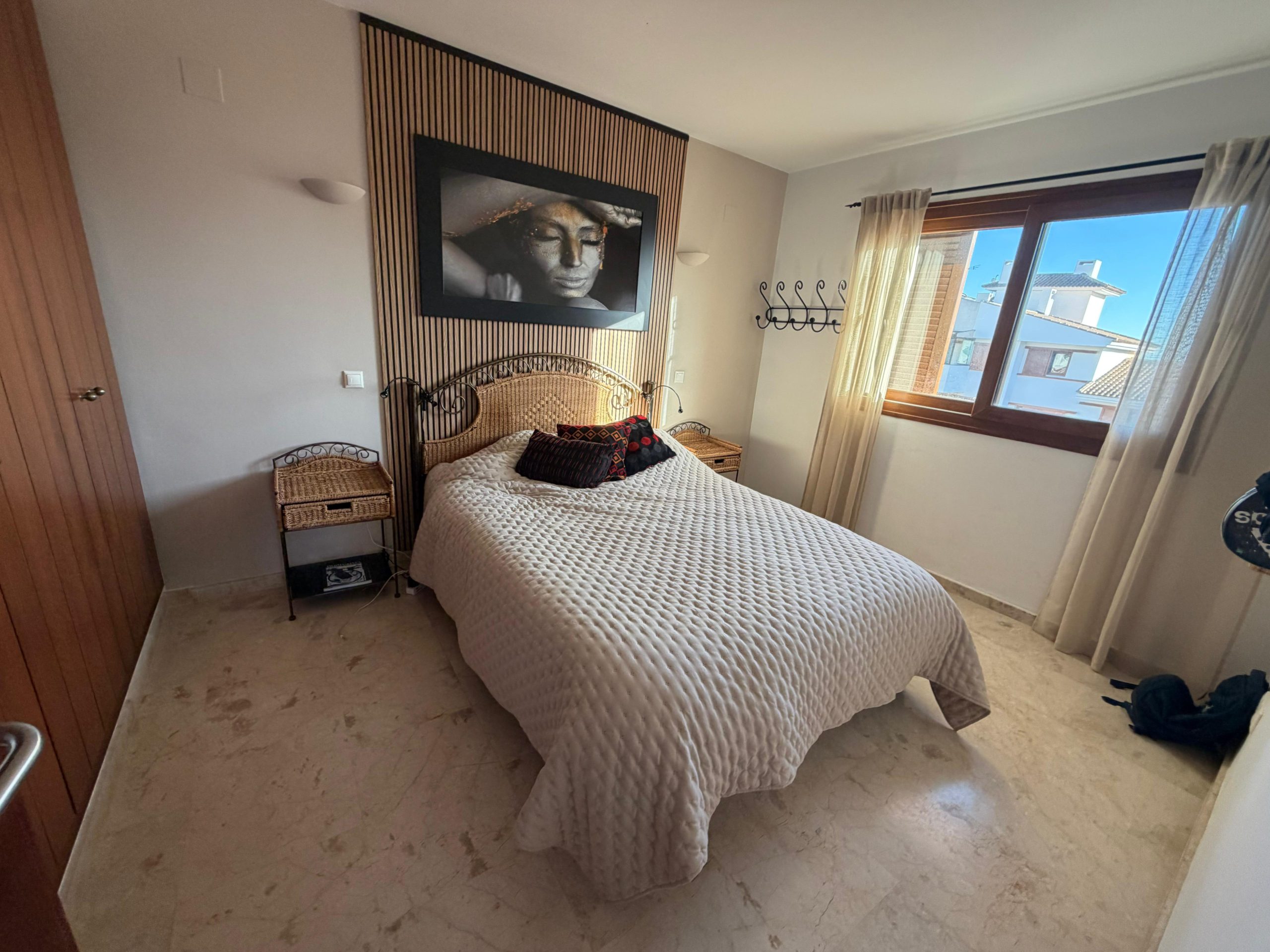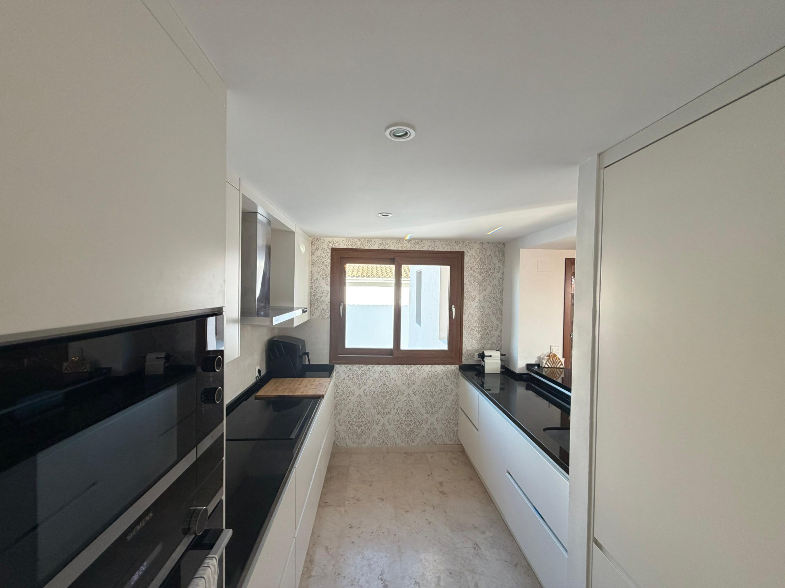Apartament oferuje jasny, przestronny salon z jadalnią oraz nowoczesną kuchnię w układzie open space. Z części dziennej prowadzi wyjście na imponujący taras o powierzchni 65 m², z którego roztacza się widok na basen oraz tereny wspólne. To idealne miejsce do relaksu, spożywania posiłków na świeżym powietrzu oraz korzystania z ponad 300 słonecznych dni w roku.