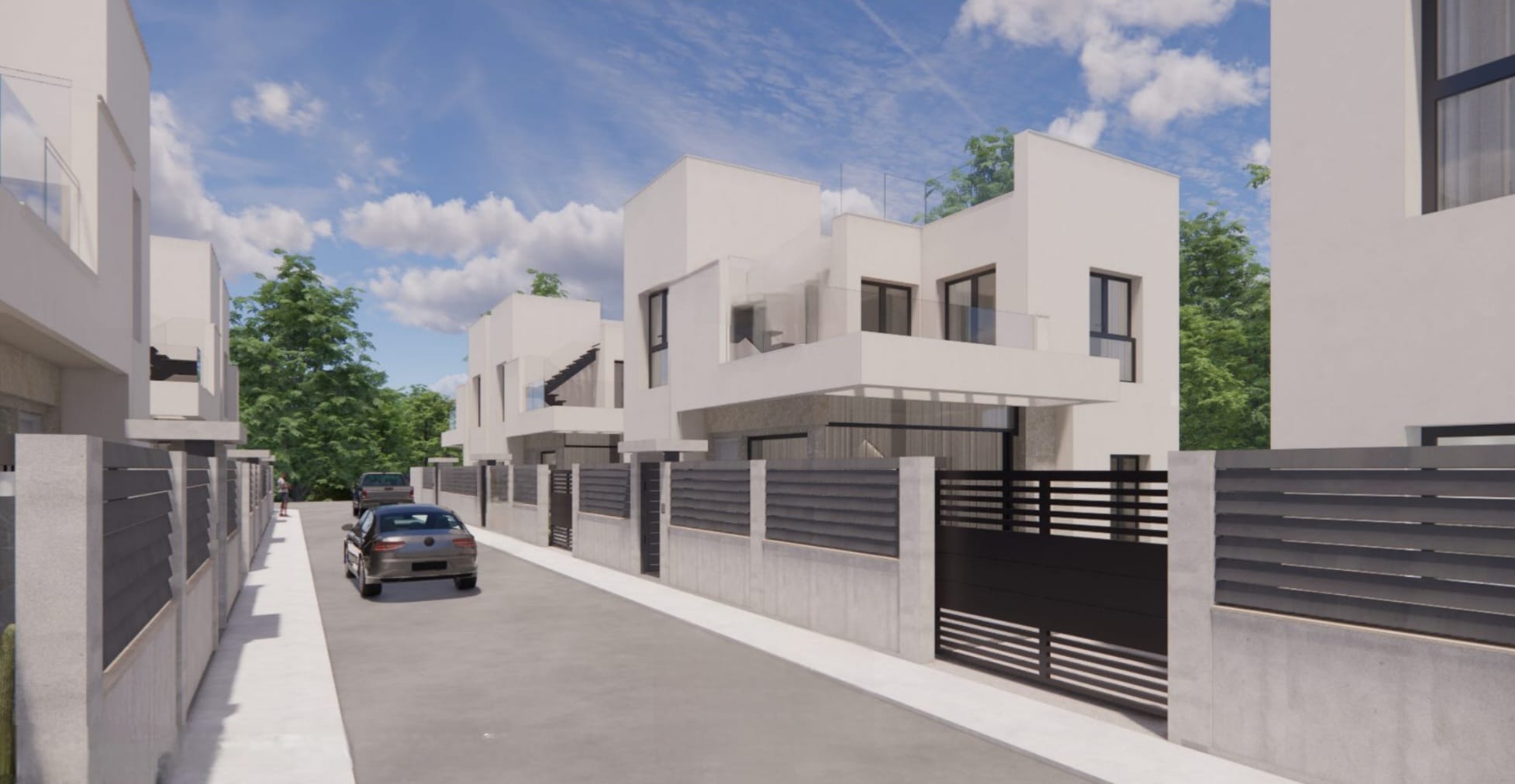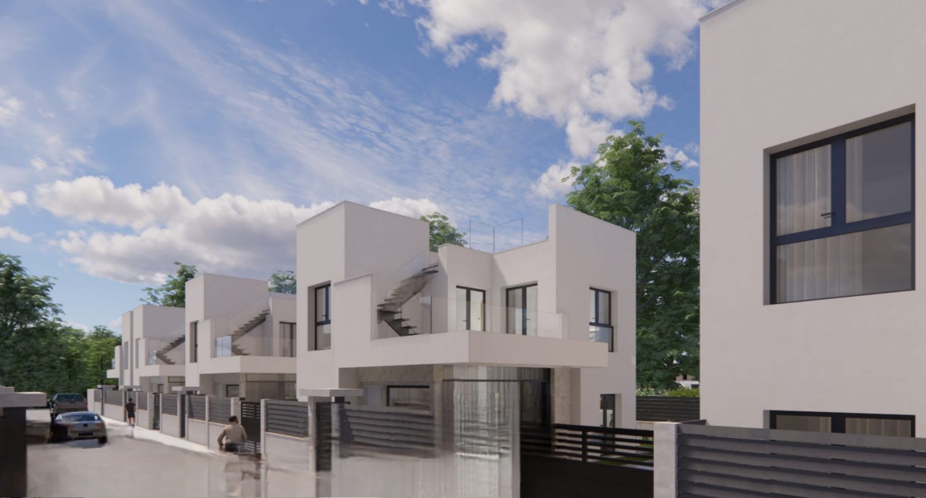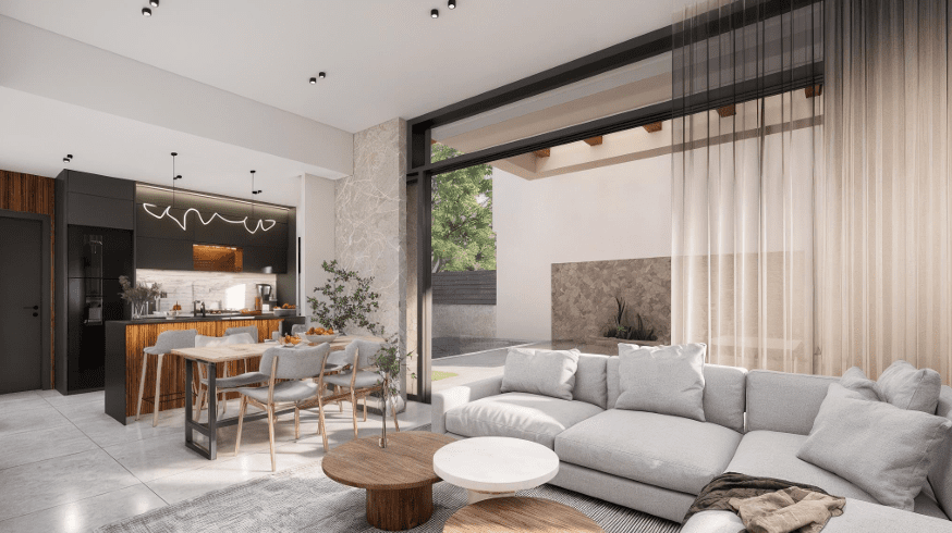 Nowoczesna willa to część prestiżowej inwestycji zaprojektowanej z myślą o komforcie i nowoczesnym stylu życia. Wysoki standard wykończenia obejmuje fasadę z tynkiem i kamieniem naturalnym, okna aluminiowe z szybami niskoemisyjnymi, rolety elektryczne, a także ceramiczne posadzki wewnątrz i na zewnątrz budynku.