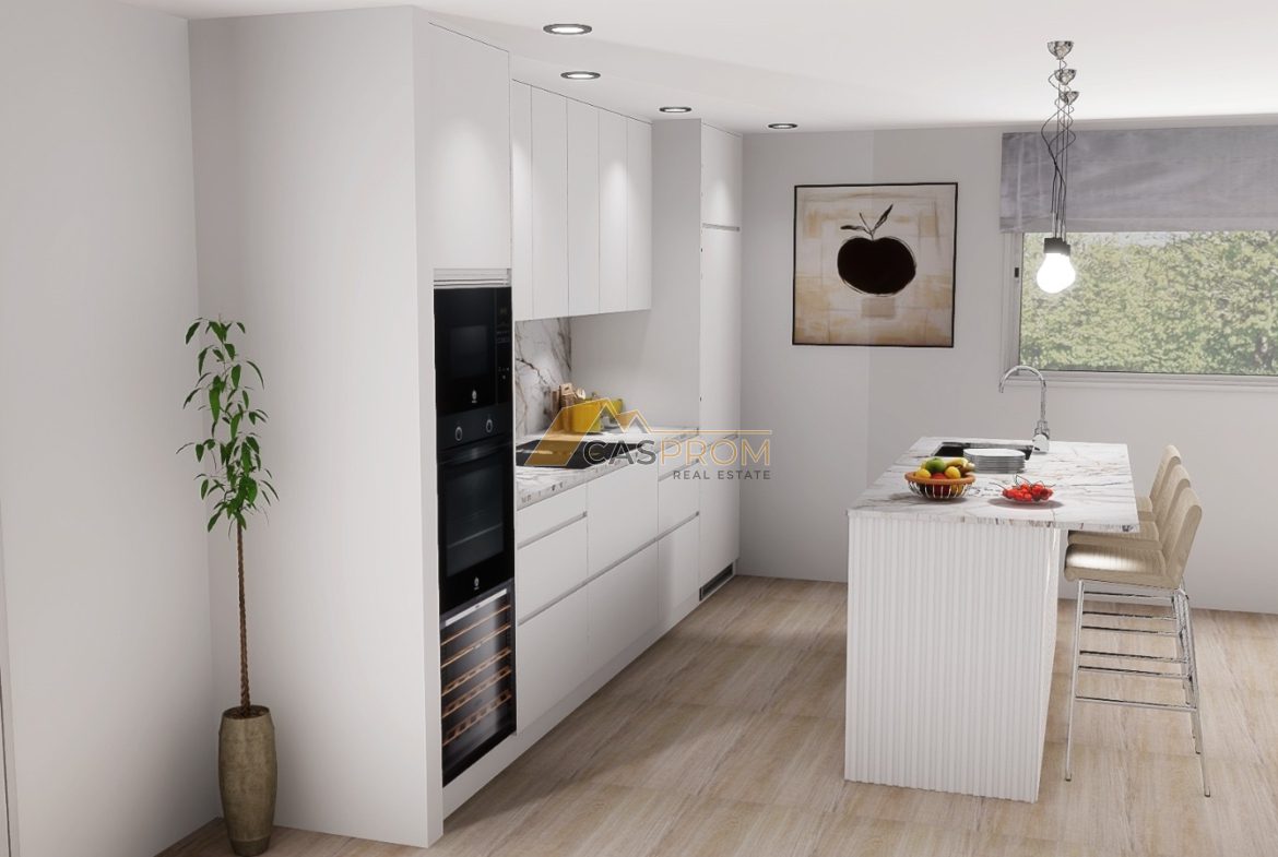 Na parterze znajduje się przestronny salon z jadalnią oraz nowoczesna kuchnia w układzie otwartym, z bezpośrednim wyjściem na tarasy i strefę basenową. Duże przeszklenia zapewniają doskonałe doświetlenie wnętrz oraz płynne połączenie przestrzeni wewnętrznej z ogrodem. Na piętrze zaprojektowano część nocną z trzema komfortowymi sypialniami oraz dwiema nowoczesnymi łazienkami. Dodatkową przestrzeń stanowi prywatne solarium o powierzchni 61 m², idealne do opalania, relaksu lub stworzenia strefy chill-out z panoramicznymi widokami.