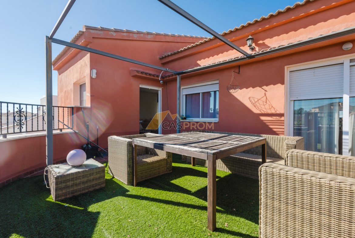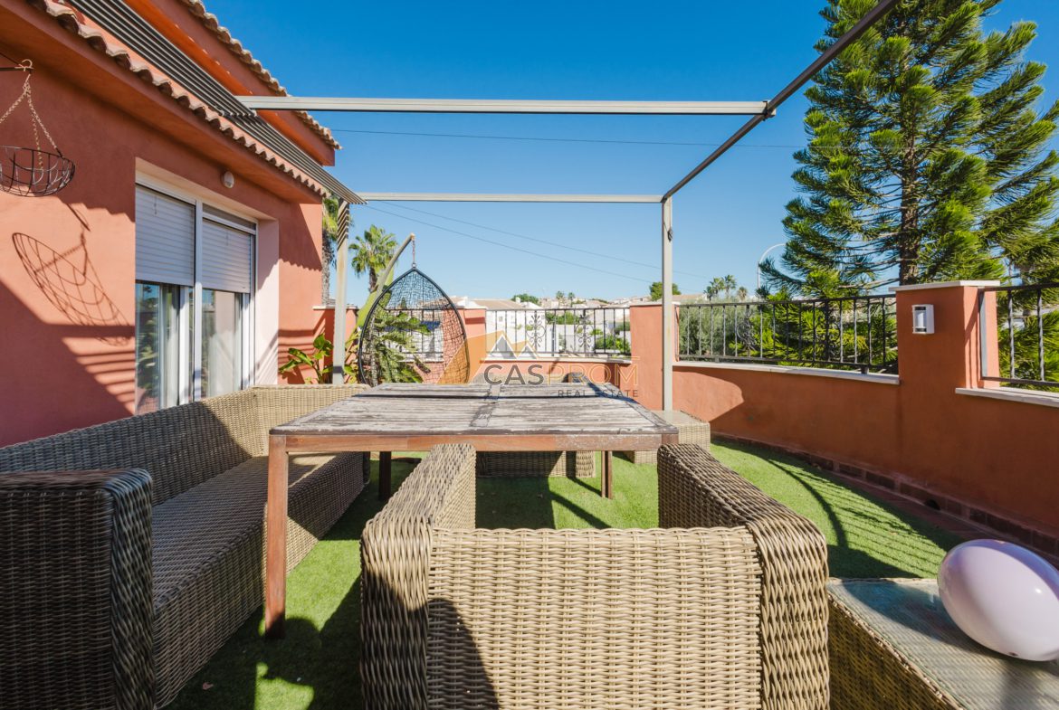 Twoja śródziemnomorska oaza w La Siesta — niezależna willa pełna światła i uroku, idealna do korzystania z uroków życia na Costa Blanca. Nieruchomość składa się z dwóch niezależnych mieszkań, co świetnie sprawdzi się w przypadku dużych rodzin lub podczas przyjmowania gości w pełnej prywatności.